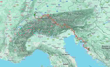 Die Auszeit über 3 Monate. Über die Alpen nach Meran, weiter durch die Dolomiten und das Friaul bis nach Triest.